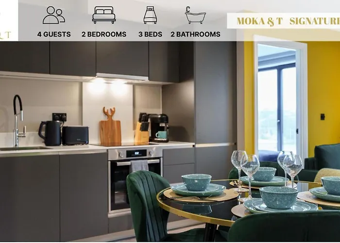 O apartamento Jungle Luxe Retreat, 2Bed 2Bath Leeds, Center & Stadium de 2 quartos está situado no distrito Canal Wharf, a uma distância aproximada de 25 minutos a pé de Leeds Royal Armouries. Com tênis de mesa, os hóspedes ativos podem diversificar o seu lazer.